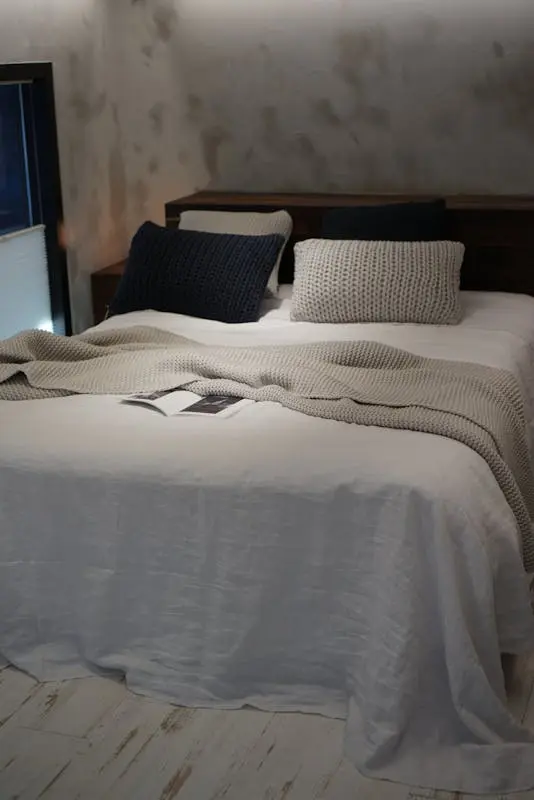 Gives you that ultra-soft, sink-in feeling. One or two are plenty; you don’t need a mountain of cushions. - Linen or soft cotton sheets
