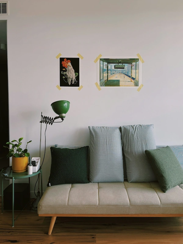 - Wood frames or a wood floor lamp base in a corner that feels flat.