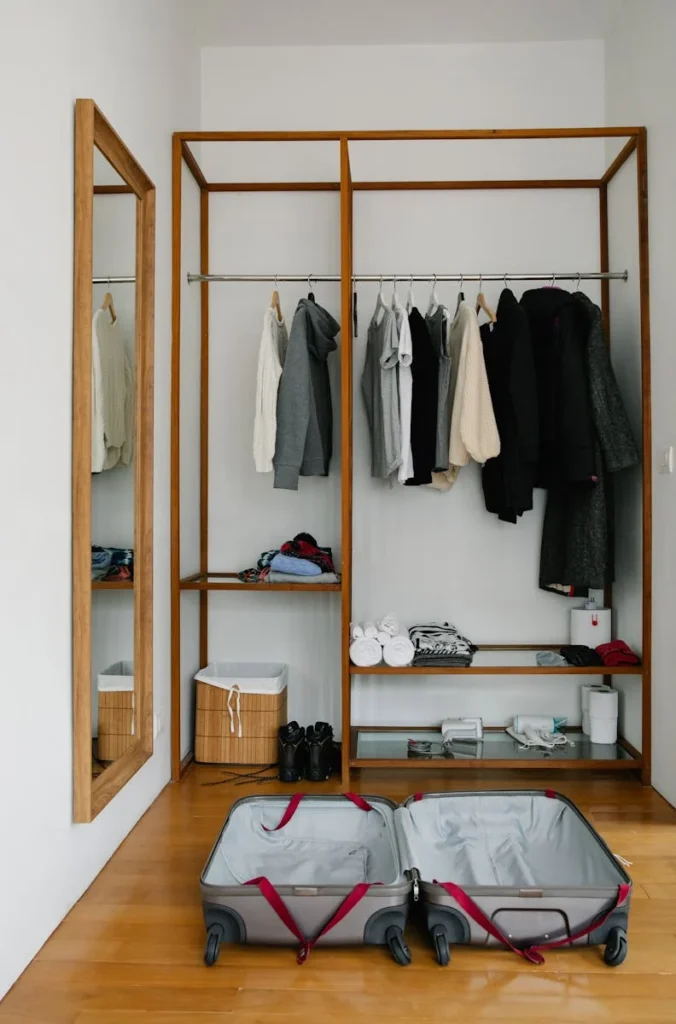 - If ceiling height allows, take it all the way up. The top zone becomes deep storage for suitcases, bedding, and off-season clothes.